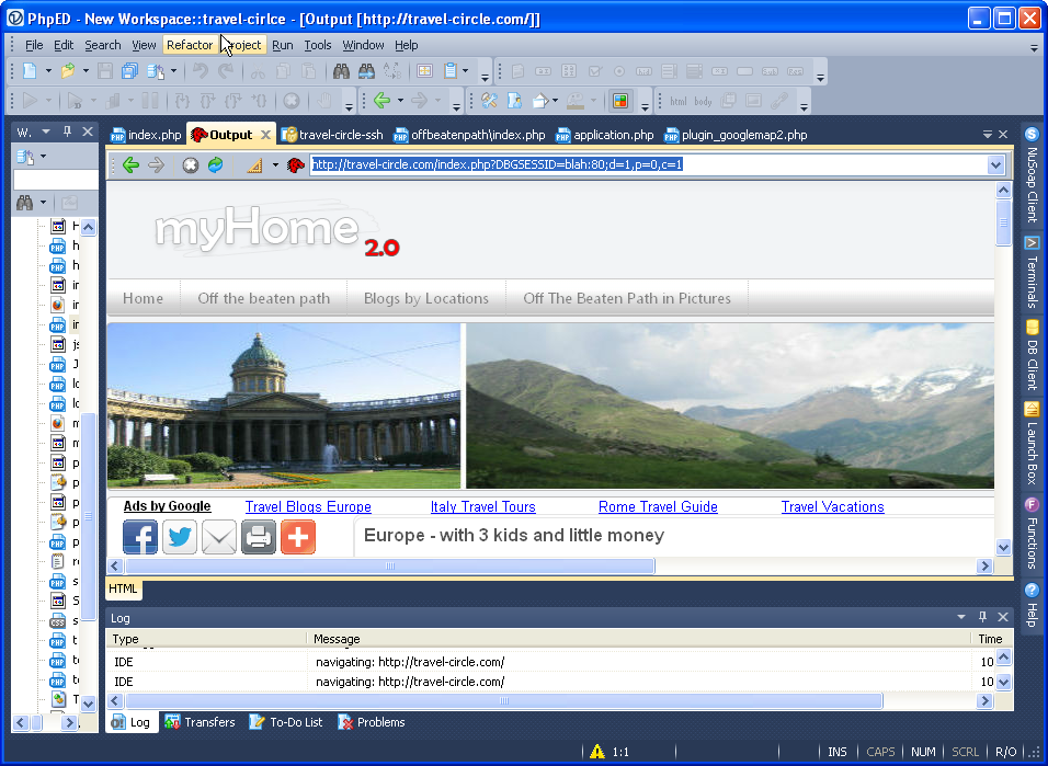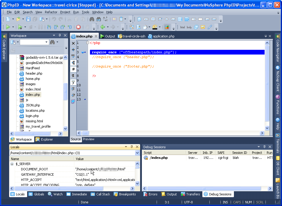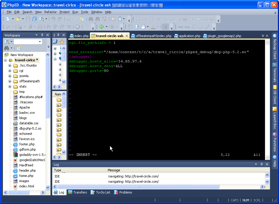 We took PhpED 8.1 - the latest version of PHP IDE from NuSphere to the task. We reviewed PhpED in our php editors section before, it is one of the most advanced PHP IDEs out there and the power of their PHP debugger is something we would hate to lose in the shared hosting. The good news is - you can have the full power of good PHP IDE/Editor and run your website under the cheapest ISP plans. One of our editors is also a travel enthusiast building his website travel-circle.com - Joomla hosted in GoDaddy shared Linux account. He set up PhpED to debug his PHP code  -  and here the little tutorial that came out of it: