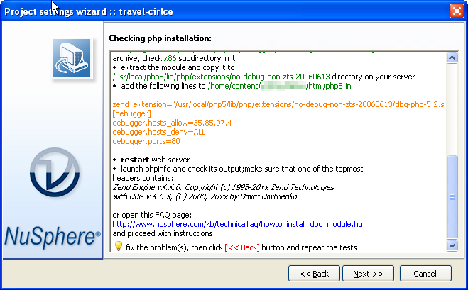 NOTE: If you were on a VPS or a dedicated server where you owned PHP and Apache install, wizard would be likely to install the debugger and you wouldn't even bother knowing how it is done. In shared hosting where main php.ini is unavailable wizard won't get through with the install, but it will give you the precise information about what to do. Here is a screenshot of  one of the last pages of the wizard: