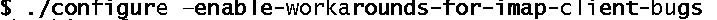 firstly without the --enable-workarounds-for-imap-client-bugs, and then run the check, and then build again with the flag,