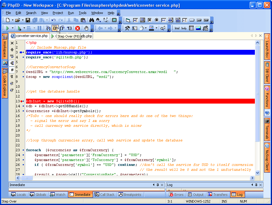 - Step-Out: Execute program execution until you reach the line of PHP code that called the currently executing function.
