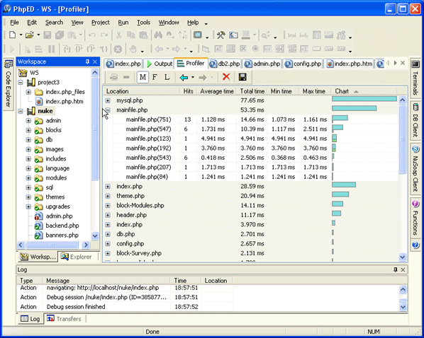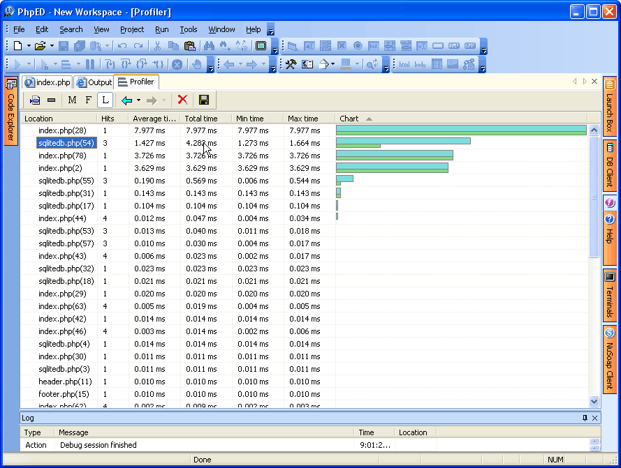 The PhpEd PHP Profiler tells you which PHP scripts are the most time consuming. The profiler report displayed in the PHP Profiler output table show: