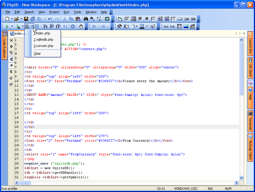 The Run PHP Profiler toolbar button also provides a drop-down menu containing a list of PHP scripts that were previously run using the PHP profiler.